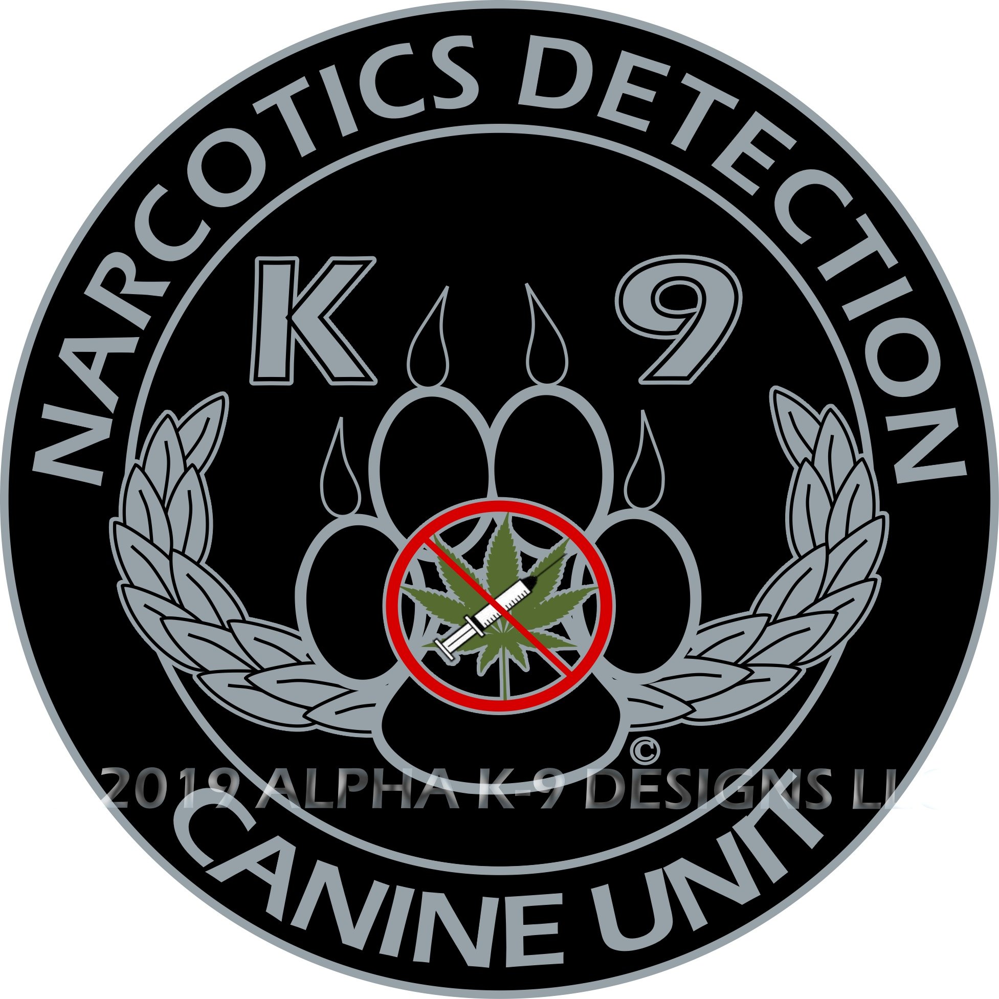 Narcotics Detection K-9 Unit design on a 4" x 4" reflective vinyl decal.