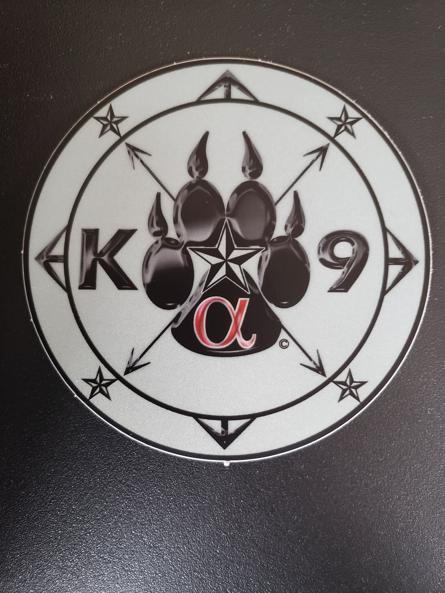 Alpha K-9 Paw Compass design on a 4" reflective vinyl decal.