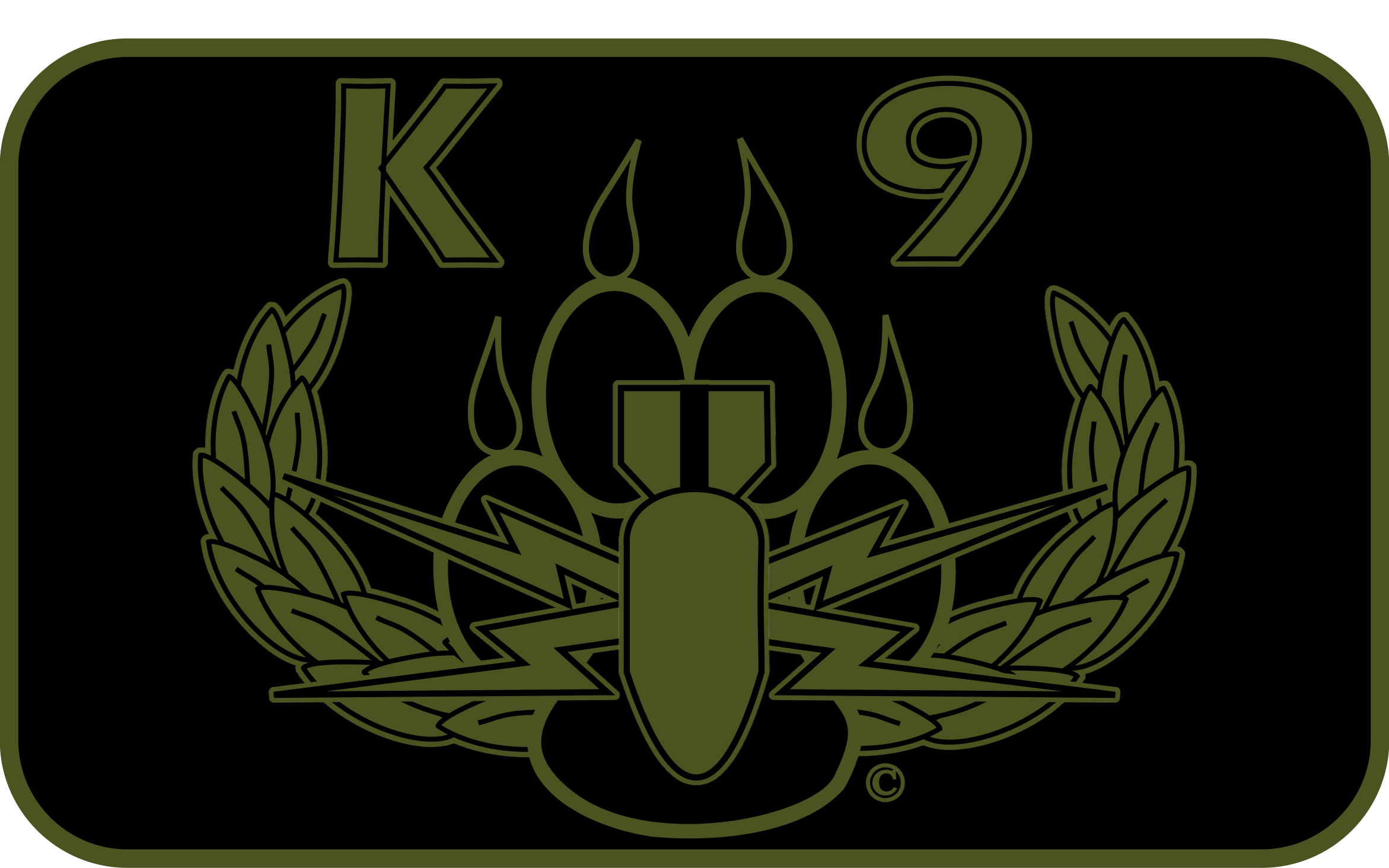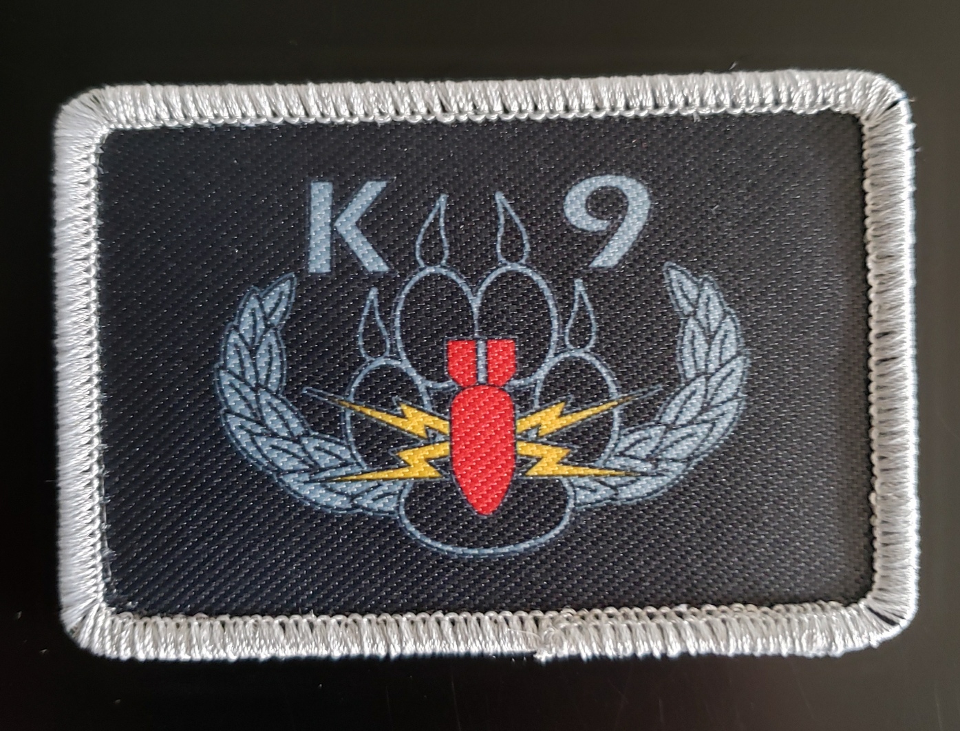 Alpha Explosives Detection K9 insignia design on 2"x 3" vinyl & canvas patches with Velcro hook backing. Great for patch caps.
