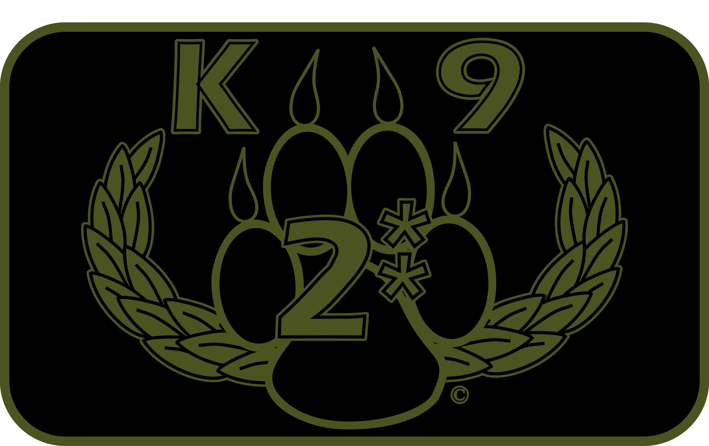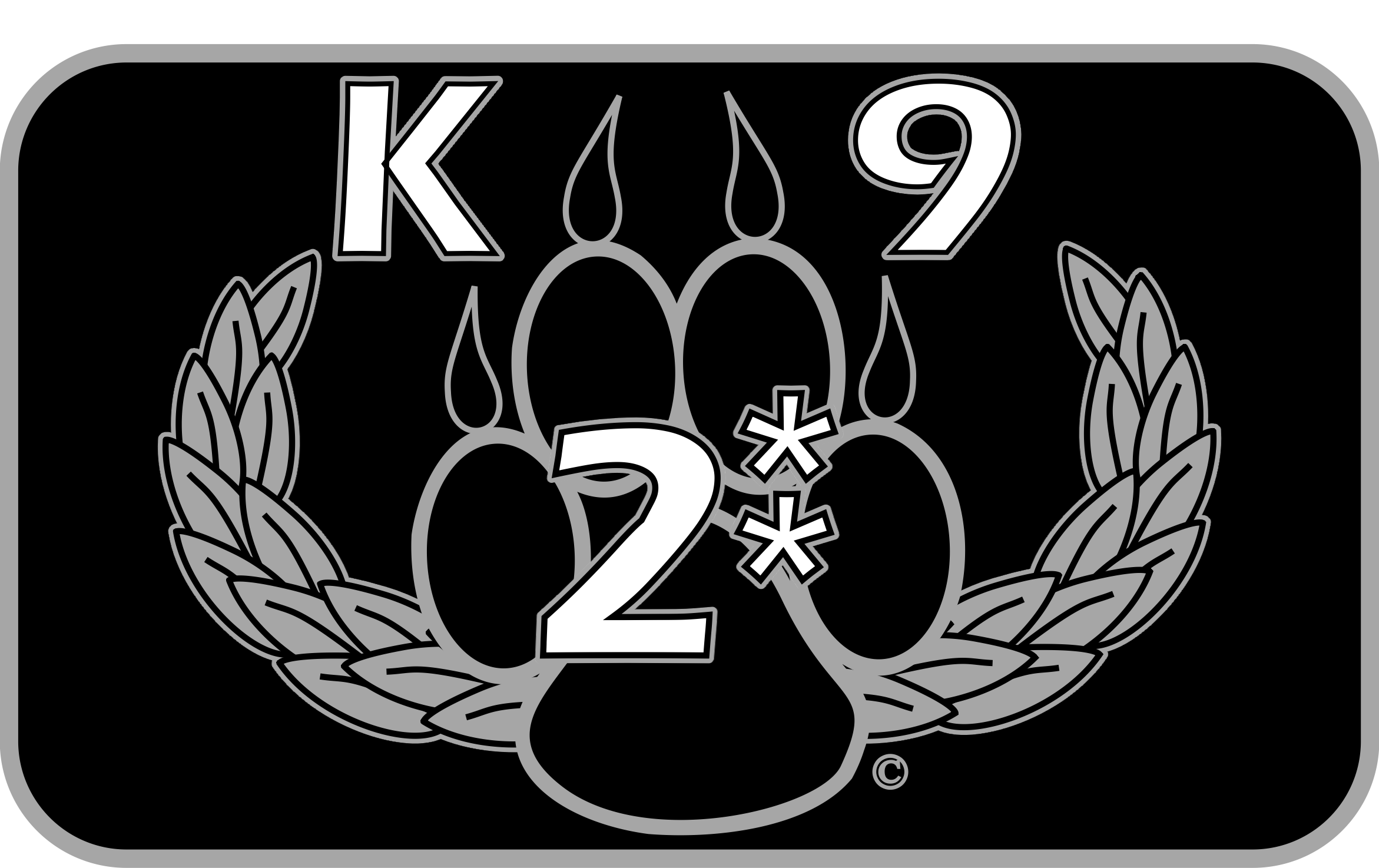Alpha 2** K9 insignia designs on 2"x 3" vinyl patches with Velcro hook backing. Great for tactical hats.