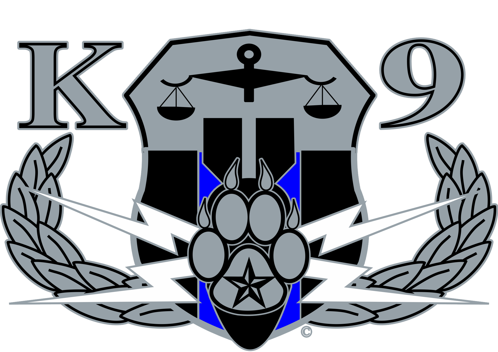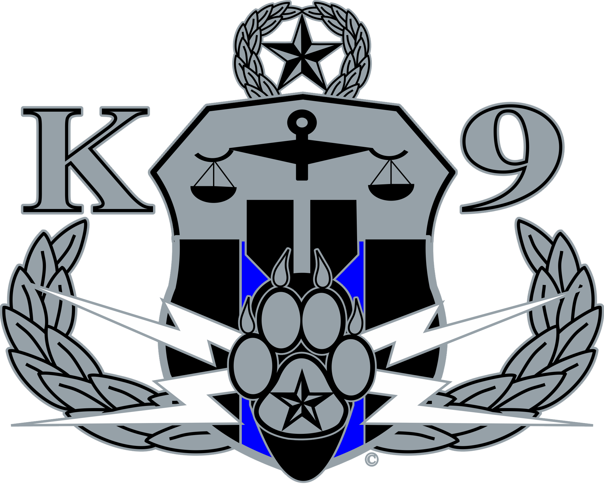 Explosives Detection K-9 Insignia 4.5" x 3" and LEO Explosives Detection K-9 Insignia at the handler, Senior handler (5+ service yrs), and Master handler (10+ service yrs) levels.